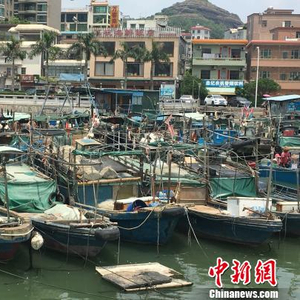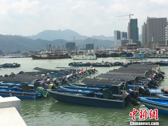 图为广东惠州大亚湾澳头港码头前进村的数百条渔船已经回港避风、避险。 宋秀杰 摄