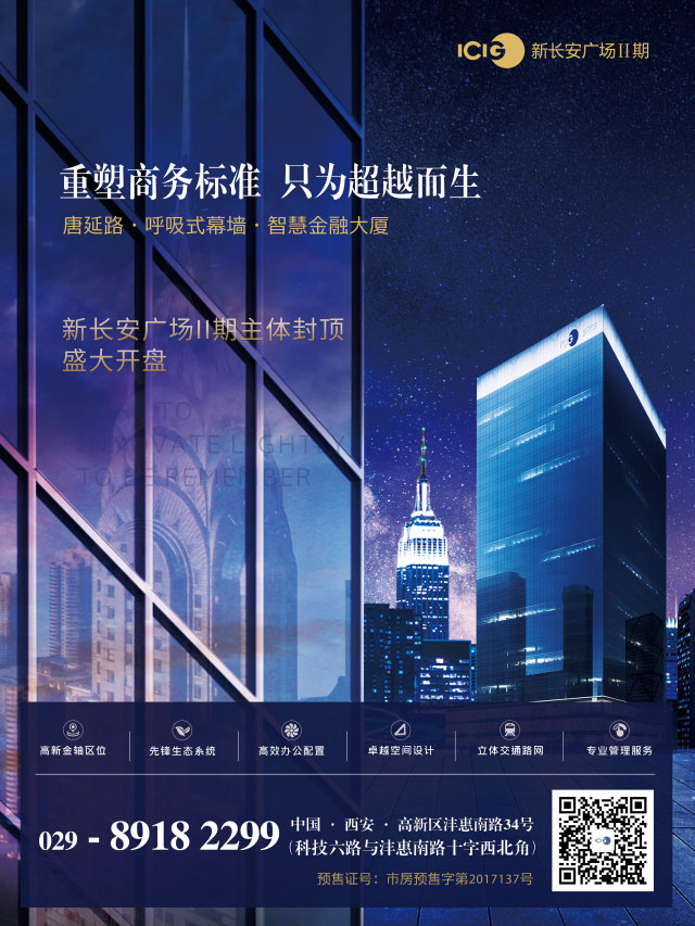 作为西安写字楼全新升级之作——新长安广场II期集国际标准甲级写字楼、商业配套为一体,将打造西安高新商务区永不落幕的璀璨标识,迎接众多企业与投资者的到来。