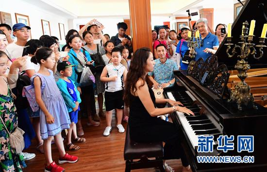 在鼓浪屿钢琴博物馆里,一名来自上海的钢琴艺术家在为游客现场演奏(8月15日摄)。新华社记者 魏培全摄