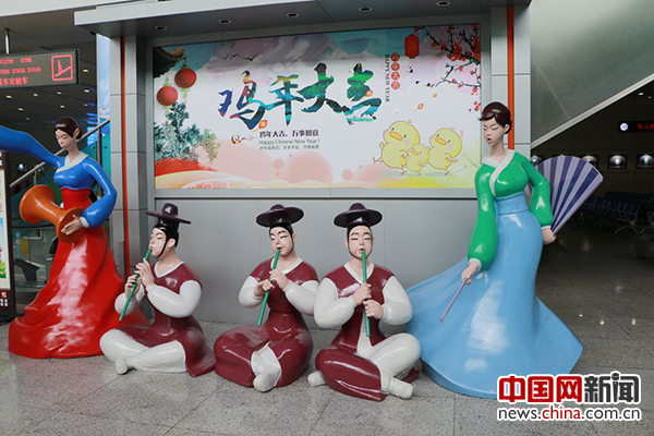 车站大厅内的朝鲜人物雕塑。中国网记者 唐佳蕾/摄