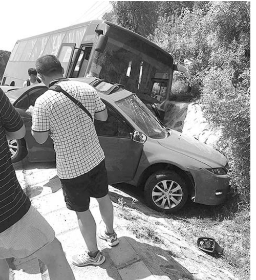车祸发生后,三位游客腿部擦伤,其中两位女游客因车祸受到惊吓,一位晕倒,一位心脏不适,所幸在去医院处理后,都转危为安。