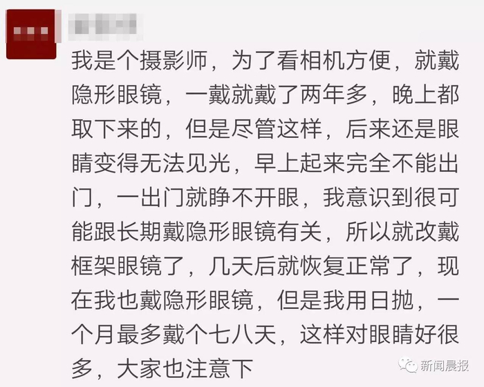 一时疏忽付出巨大的代价,记住不要过长时间配戴隐形眼镜,不要因为偷懒不摘隐形眼镜就睡觉了!