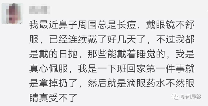 很多经常加班的职业人士,一忙一累晚上经常忘了摘下隐形眼镜,有时甚至连续戴三四天,睡觉也不取掉。虽然当时并不会感觉有什么异样出现,但是当有不良反应再去医院检查的时候,问题就比较严重了。