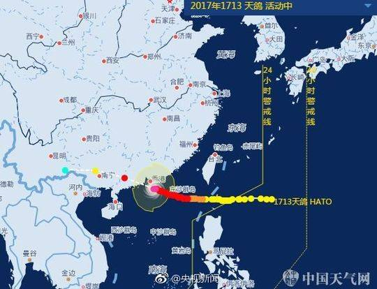 中央气象台今日6时发布台风红色预警,预计,今年第13号台风“天鸽”将于23日中午前后在广东珠海到阳江一带沿海登陆。