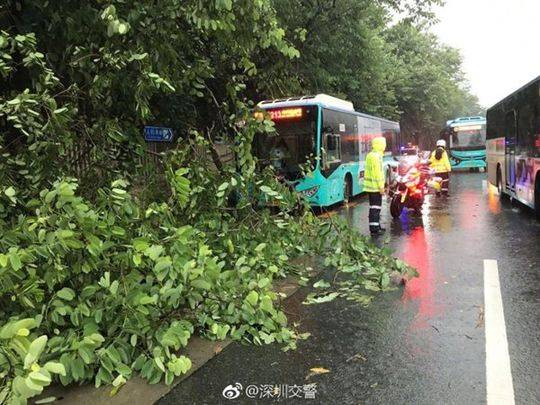 今晨(23日)早高峰期间,受风雨影响,广东深圳笋岗路西往东园岭天桥路段出现倒树情况,影响交通,目前交警正进行疏导。