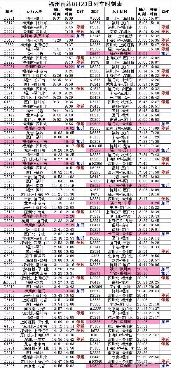 有关列车停运及恢复开行等具体信息,请广大旅客朋友及时关注车站公告,也可关注福州火车站官方微博或拨打12306客服电话查询。