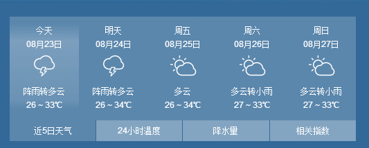 26日白天到夜里,全市多云到阴,部分乡镇有阵雨或雷阵雨,局部大雨。