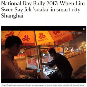 8月20日,新加坡《海峡时报》刊登了一篇题为《2017国庆群众大会:当林瑞生在智能城市上海感到自己成了“乡巴佬”》的文章。