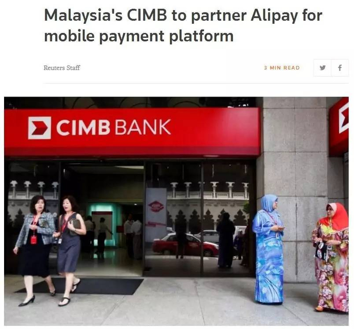 据路透社消息,今年7月,马来西亚的银行同样决定和支付宝合作,以搭建马来西亚的电子支付平台。