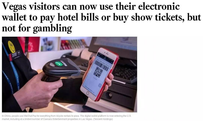 根据《洛杉矶时报》报道,凯撒娱乐最近还开通了微信支付。中国游客在去拉斯维加斯旅行时也可以通过微信来支付酒店、餐饮、演出门票等,这也为中国游客在当地的消费提供了一大便利。