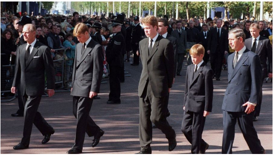 哈里王子在今年6月接受美国《新闻周刊》专访提到母亲黛安娜王妃的过世时表示,当年他和哥哥威廉王子被要求走在王妃灵柩后方。哈里表示,即使丧礼过了20年,这样悲伤的情绪仍会压倒他,“我的母亲刚刚去世,我不得不在她的棺材后面走很长的路,被数以千计的人包围,还有数百万人在电视前收看。”他对此感到不悦,“我认为不应该要求任何孩子这样做,即使是在今天也不该这样做”。
