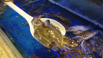 海曙中心菜场一家海鲜摊位上,老板娘正卖力吆喝着:“白蟹,新鲜的白蟹!这批鲜白蟹比较瘦,便宜卖了,一斤10元。”边吆喝老板娘还边举起了一个蟹告诉记者,“这种蟹上个月要卖到三四十元一斤呢。”