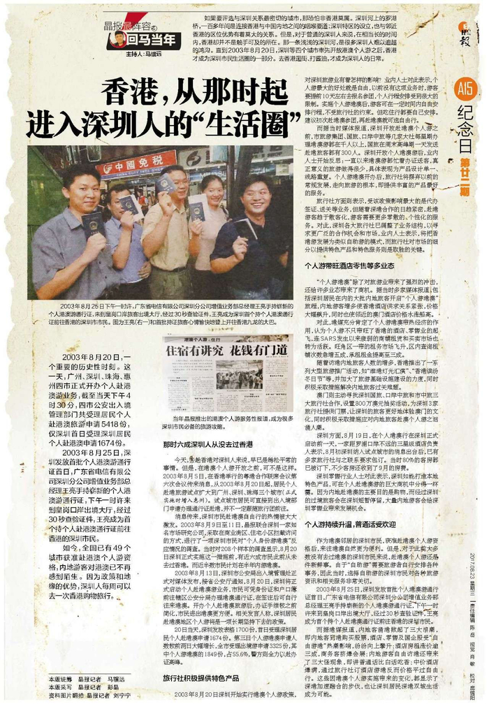 作为港澳邻居的深圳市民,获准赴港澳个人游资格后,来往港澳自然更为便利。但是,对于此前大多数没有去过港澳的深圳市民来说,赴港澳个人游还是件新鲜事。由于“自助游”需要旅游者自行安排各种事务,因此当时,选择自助游的深圳市民对各种旅游资讯和相关服务非常关切。