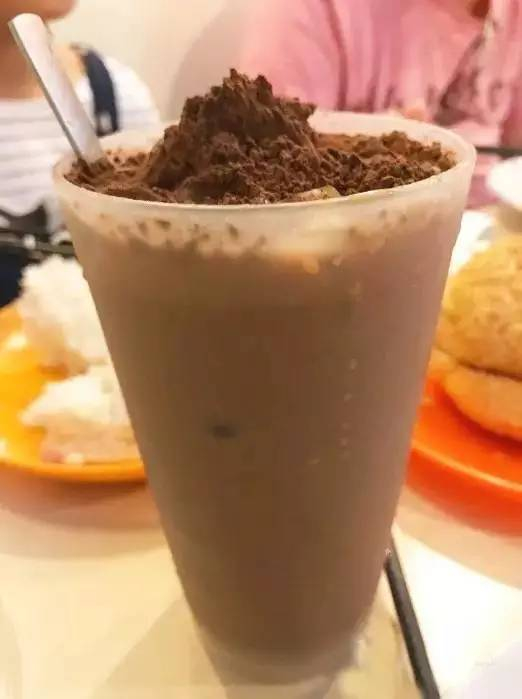 朱古力奶上面厚厚一大层可可粉,