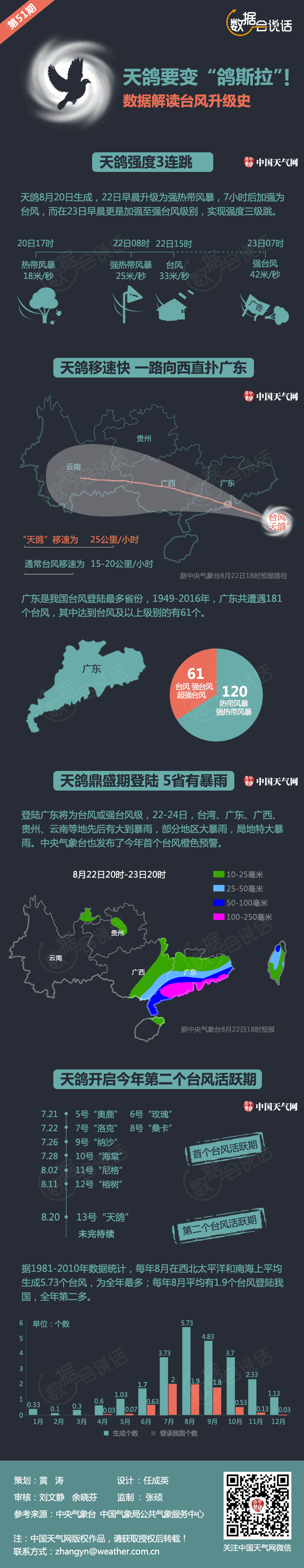 具体来看,22日上午8时,“天鸽”用了快两天的时间,刚从热带风暴级升级至强热带风暴级;22日下午3时,它很快升级到了台风级;23日早晨7时,随着距离我国陆地越来越近,它又升级到强台风级。