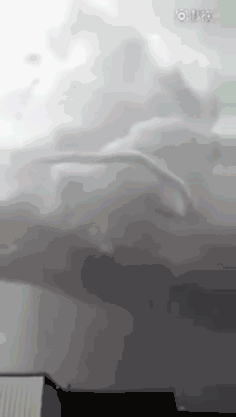 行人只能死死把住路边的围栏,才不会被吹跑↓
