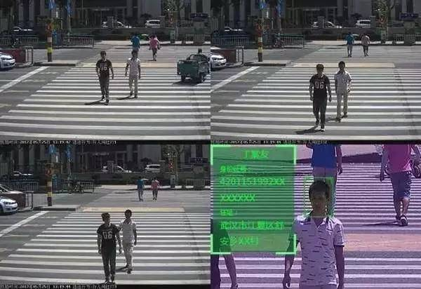 行人闯红灯的人脸识别系统在十字路口都设置有一块电子显示屏和人脸识别摄像机,一旦有行人闯红灯,该行为视频信息和当事人的部分个人信息就会显示在电子显示屏上,中间时差大约只有 10 秒钟的时间。