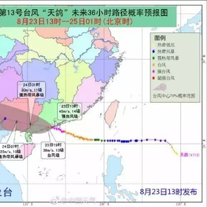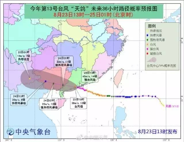 据南方网报道,预计“天鸽”登陆后将继续向偏西北方向移动,穿过广东江门、阳江、云浮或茂名,半夜前后移入广西境内,强度逐渐减弱。
