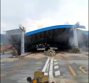 今天早上,有网民发布了一段高速收费站被台风刮倒的视频,在社交网络引起惊恐。
