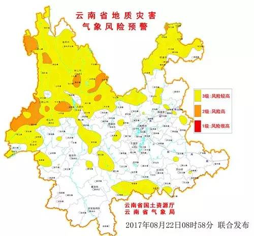滇东北昭通、曲靖,滇西北怒江、迪庆、丽江、大理,滇西德宏、保山,滇西南临沧、普洱,滇南红河州,滇东南文山,滇中楚雄及昆明部分地区发生滑坡泥石流的风险较高;