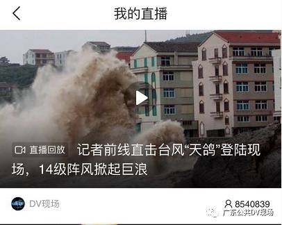 登陆后“天鸽”降为台风级,15时中心位于台山境内,中心附近最大风力13级(40米/秒),并以每小时30公里左右的速度向西偏北方向移动。《DV现场》记者第一时间赶赴现场,发回了现场直播,与全国854万人一起,见证了超强台风可怕的一幕。