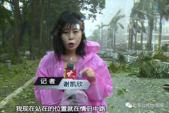 《DV现场》记者谢凯欣在珠海台风登陆现场。