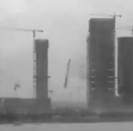 在其他的画面中,还有塔吊直接从高层建筑上空坠落,让人心悸。