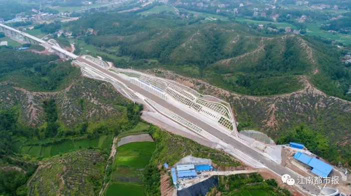 路基完成设计总量的96.6%,桥梁设计总量的91.0%,隧道累计完成设计总量的74.9%。