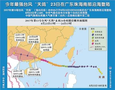 据气象部门通报,8月23日,台风“天鸽”来袭,对深圳造成严重影响。截至23日18时,全市普遍记录到暴雨,平均雨量48.2mm,各区中平均雨量最大69.3mm,出现在坪山区,最大累计雨量90.1mm,在坪山区田头站。全市普遍记录到8到10级的阵风,共有24个站记录到10级以上阵风,最大阵风43.2m/s(14级)和最大十分钟平均风30.9m/s(11级)均出现在大鹏新区天文台站。“天鸽”虽然已经过境,但市民仍需远离大树、广告牌等可能发生危险的区域;远离架空线路、杆塔和变压器等高压电力设备,切勿接触被风吹倒的电线,避免在外逗留。