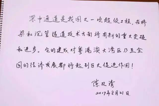 “深中通道是我国又一项超级工程,在桥梁和沉管隧道方面将有新的重大突破和进步。它的建成对粤港澳大湾区和全国的经济发展都将起到巨大促进作用。”参与评审的陈政清院士认为,深中通道项目正处于我国从积累丰富建设经验的“桥梁大国”转变为追求开拓创新的“桥梁强国”历史机遇点上,“在台风频发的海域上建设超大跨度桥梁,实属世界罕有,可见深中通道的科研成果及建设经验都将引领桥梁抗风领域的研究和应用取得新的重大突破。