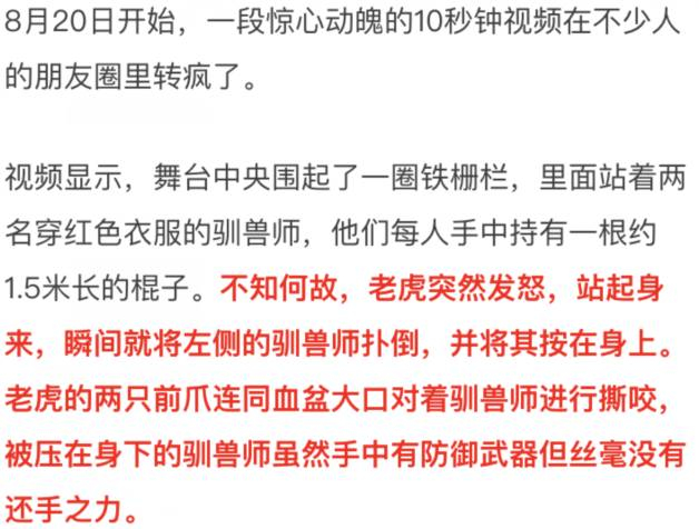 老虎攻击驯兽师视频热传