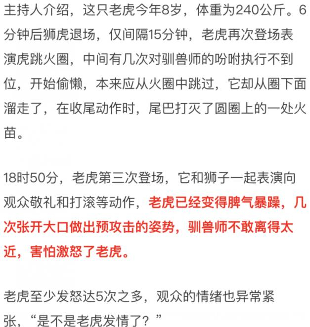 老虎表演一天三场变两场