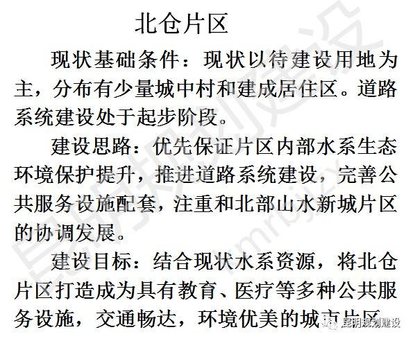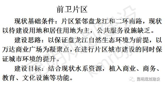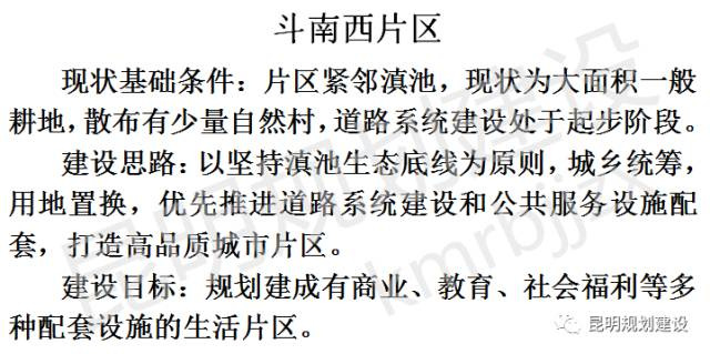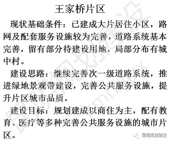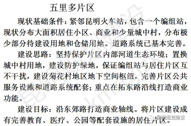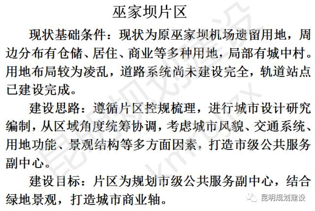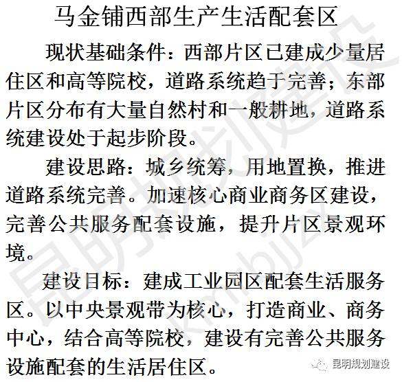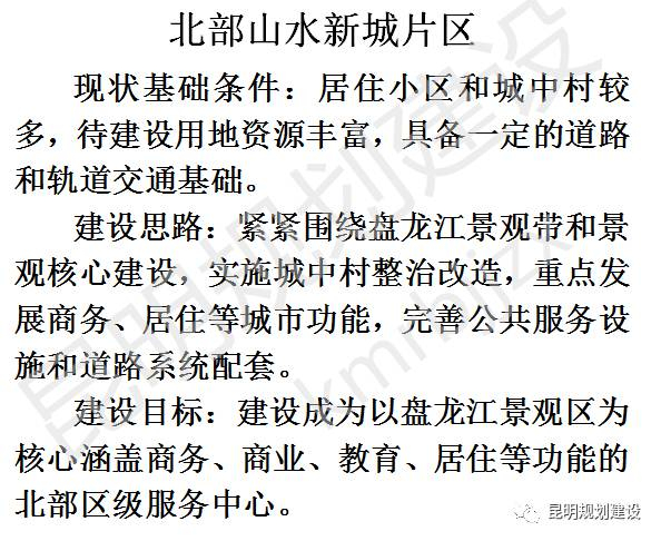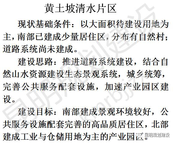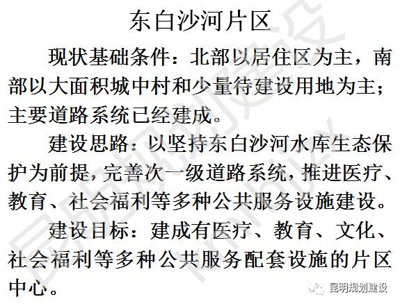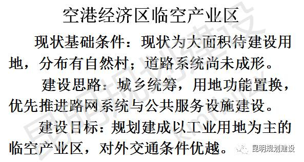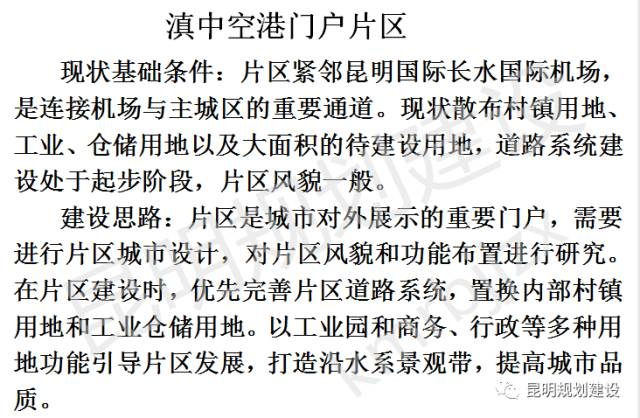 重点建设的7大片区:盘龙区东白沙河片区、长水国际机场生活配套服务区、空港经济区临空产业区、黄土坡清水片区、吴家营片区、马金铺西部生产生活配套区、大渔片区。