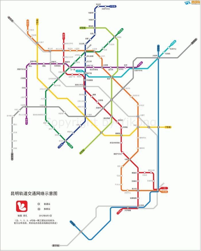 对于城市交通体系规划,“规划”中提出:大力推进快速轨道交通线和都市快线的建设。在已通车轨道1号线、2号线一期和6号线一期,以及即将通车的3号线的基础上,续建1号线延长线、2号线二期和6号线二期工程,新建4、5、7号轨道线、启动 8、9号线。同时,启动轨道交通安宁—嵩明线建设、南北快线、宜良线、富民线、海口支线的建设。
