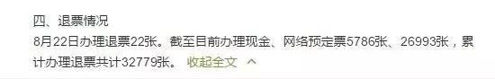 九寨沟风景名胜区管理局于8月8日晚宣布从8月9日起停止接待游客。该管理局官方微博显示,截至22日,九寨沟景区共办理现金、网络预定票5786张、26993张,累计办理退票共计32779张。
