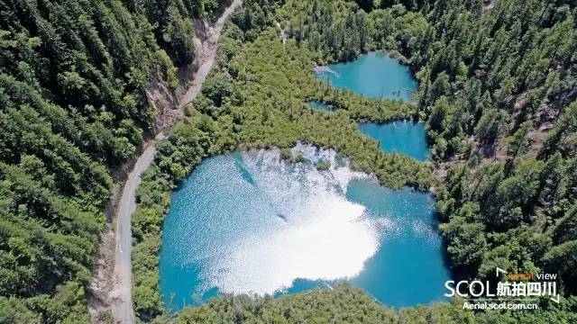 树正群海大小海子19个,整个群海,层次分明,那绿中套蓝的色彩,童话般的天真自然。旁边的树正寨安静地“看着”这群海子,等待着她恢复往日的热闹。
