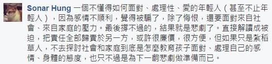 侃爷认为,在林奕含的事件中,也许与其揪着所谓的“真相”不放,不如像下面这位网友所说的那样,多去探讨下社会和家庭到底应该怎样教育孩子面对和处理自己的感情与身体,以免下一个“林奕含式悲剧”的再发生。