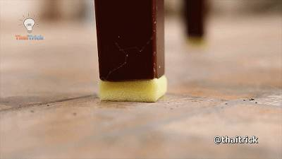 家里的凳子脚椅子脚容易打滑,拖动的时候容易有刺耳的声音不说,还容易刮坏地板,这时候剪几块小方块海绵下来。