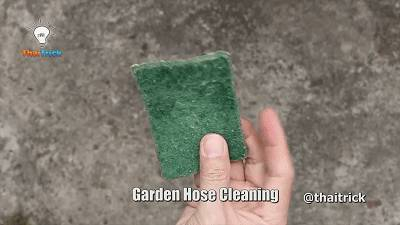 院子里的水管用久了管内会长青苔,只要撕下一层海绵,把它卷成圆柱状。