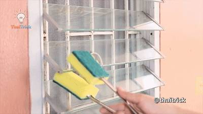 然后打湿海绵,去清理窗户或者百叶窗,堆积的灰尘可以很轻松地清理干净。