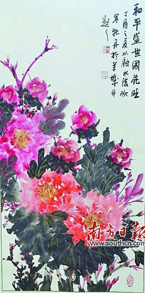 《和平盛世国花旺》(国画) 曾建国 作 (此作获第三届“和平颂·中华情”全国美术书法名家邀请展一等奖。) |