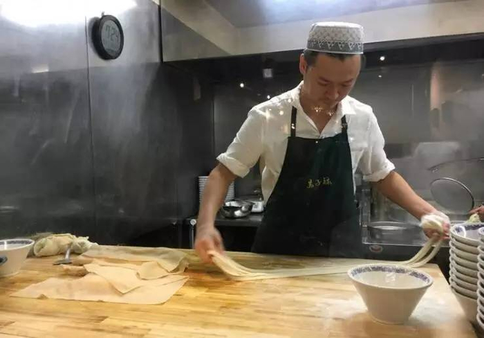 昨天,记者来到位于大众巷的“马子禄”牛肉面总店时,一楼大厅排着长队,后堂里年轻力壮的拉面师先将大团软面反复捣、揉、抻、拉、摔、掼后,捋成长条,揪成茶杯粗、筷子长的一条条面节,然后随顾客的爱好,拉出“二细”、“韭叶”、“大宽”、“毛细”等粗细不同的面条。拉面师的一拉一抻就像杂技演员在表演,让外地游客不可思议。董事长马汀在打理生意的空隙,接受了记者的采访,讲述了一段鲜为人知的故事。