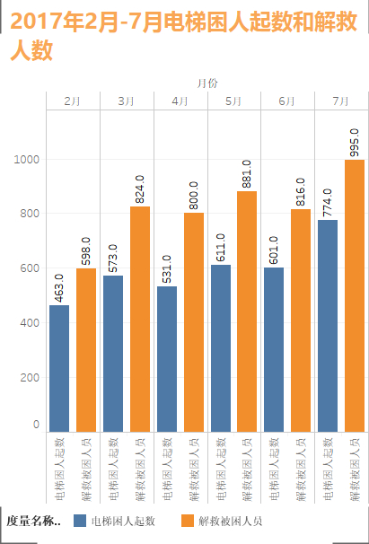 今年7月份南京市96333电梯应急处置中心处置电梯困人774起,