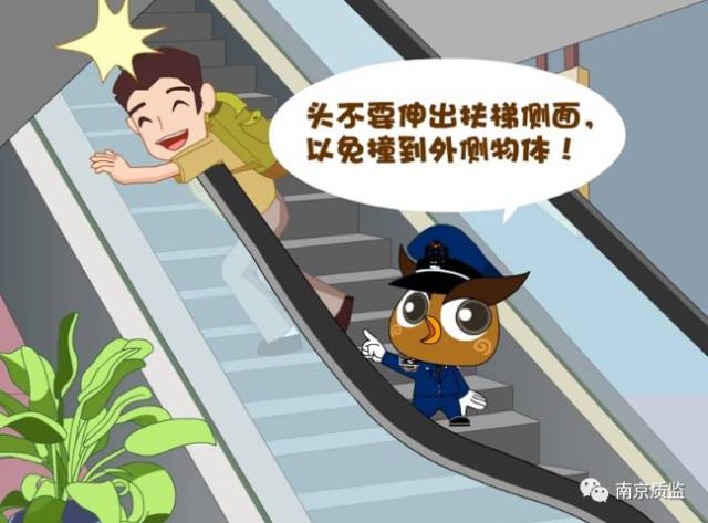 踏入自动扶梯时 要注意双脚离开梯级边缘,站在梯级踏板黄色安全警示边框内。勿踩在2个梯级的交界处,以免摔倒。