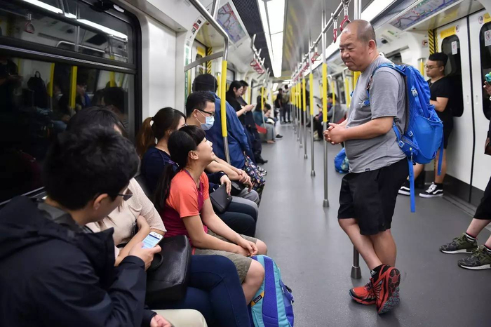 回程的港铁上,只有一个空座,爸爸让女儿坐下,自己站在一边,听女儿讲晚上训练时的趣事。