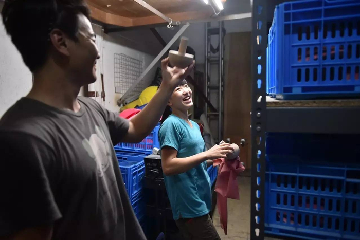 在香港攀岩馆的器材房里,彤彤一边和教练范俊杰准备器材,一边开心地聊天。