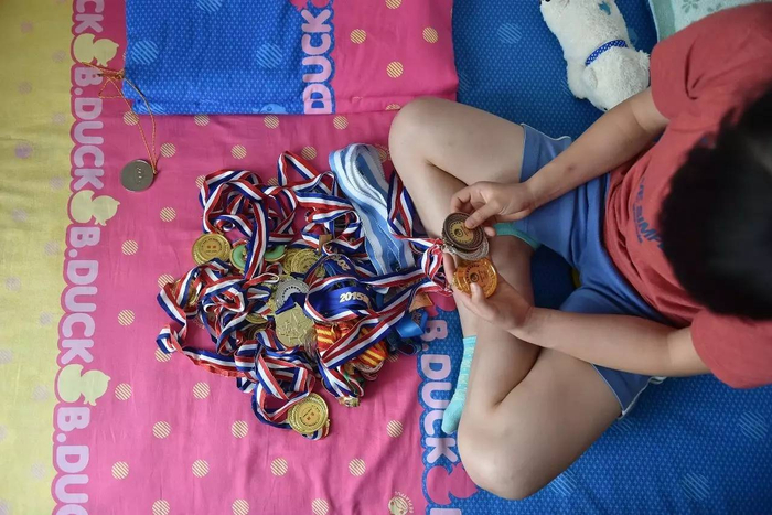 张悦彤至今的运动生涯履历极为辉煌和炫目,她拿到的奖牌可以塞满一整个书包。