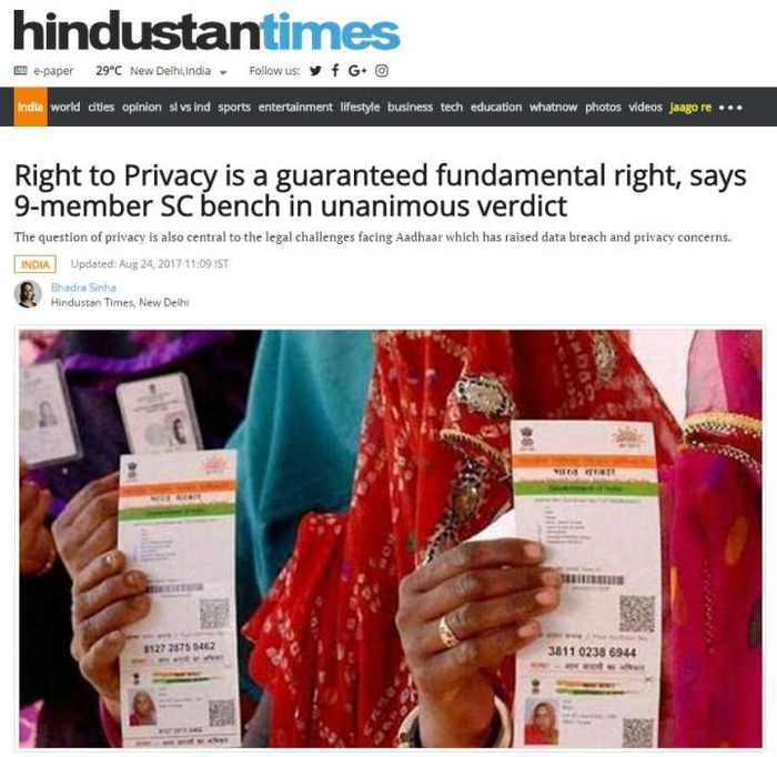 迟到的权利!印度最高法院一致裁定 隐私权是受保障的基本权利