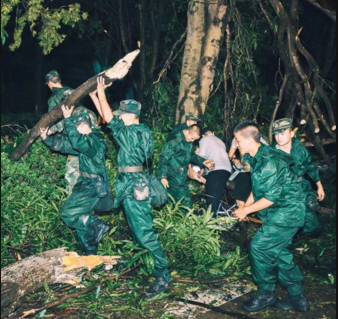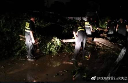 23日22时20分总队特勤大队抵达指定地点,增援清理珠海凤凰北路至海滨北路路面上倾倒的大树和路障,共12公里。此次总队特勤大队增援珠海跨区域作战,出动水域抗洪台风专业队,绳索专业队,通信技术专业队,大队指挥保障机构,共14车,84名指战员。