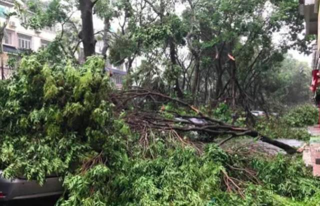 @宣鸿婷:住高层真的感觉晃动很厉害,珠海富华里的写字楼玻璃都碎了好多。好多道路被大树挡住,通行难。小车被砸很多,停水停电一片狼藉